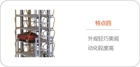 機械性能穩定,安裝操作簡便,配置靈活,存取車方便,建設周期短;占地小,容量大;外觀輕巧美觀,運行平穩,噪聲低,制動可靠;存取車時間短,自動化程度高,操作、維修方便。